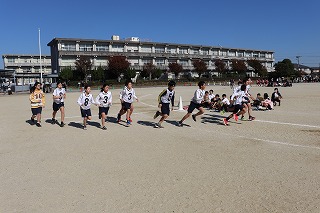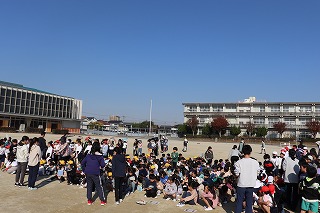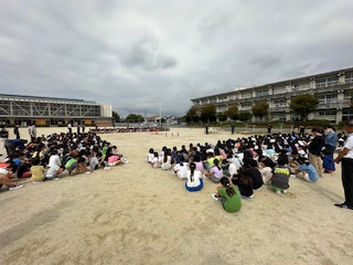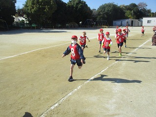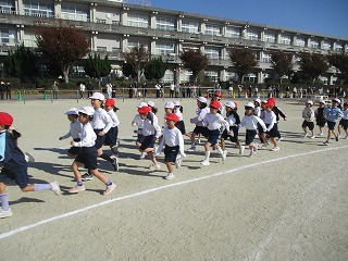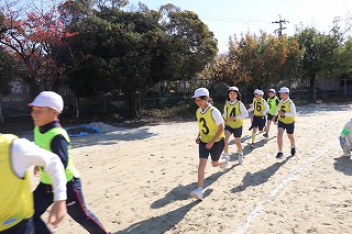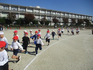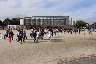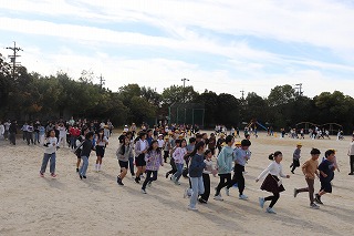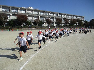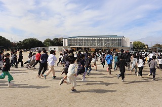 1年生から6年生まで大放課にみんなで運動場を走ります。