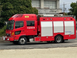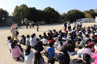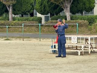 実際に消防士さんを招いて避難の様子を見てもらい、お話をしていただきました。