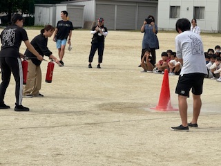 消火訓練や濃煙体験(5年生のみ)も行いました。