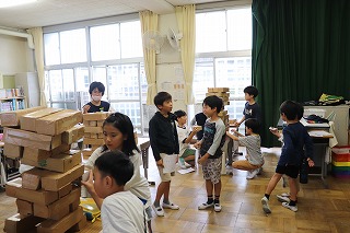 ひまわり集会が終わった後もペアで協力して後片付けをしました。