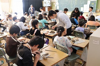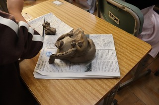 講師の方に来ていただき、来年の干支の馬をかたどった器を作りました。
